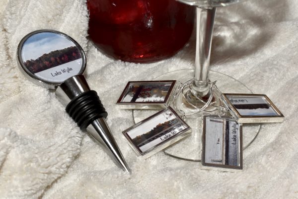 Save with a gift set! Set includes one photo wine bottle stopper and four photo wine glass charms.